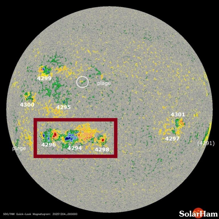 Astronomové upozorňují, že aktivní sluneční skvrny AR4296, AR4294 a AR4298 nejsou jen tak aktivní — jejich aktivita je neobvykle vysoká. Obvykle mají sluneční skvrny jednoduchou dipólovou strukturu, podobnou běžnému magnetu. V současnosti však vědci pozorují mnoho magnetických pólů, uspořádaných v…